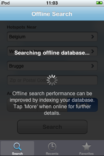 Om Wi-Fi Finder voor de eerste keer te gebruiken dien je online te zijn. Dat klinkt wat paradoxaal, omdat de software immers beweert voor jou een draadloze internetverbinding te vinden. Wi-Fi Finder heeft de verbinding nodig om een database met wifi-punten aan te maken. Deze database download je in zijn geheel (binnen het programma), waarna je ook offline de hotspots bekijkt. De offline functionaliteit is echter vrij beperkt en bestaat uit niets meer dan een lijst met hotspots in steden.