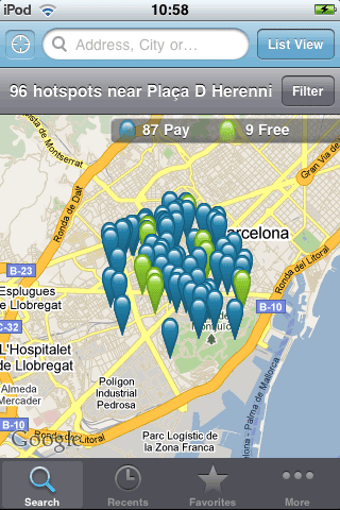 Wi-Fi Finder doet precies wat de naam suggereert. De gratis applicatie speurt naar draadloze netwerken in jouw omgeving en toont de resultaten op een kaart. De software maakt gebruik van een database, waar je als particulier of bedrijf desgewenst deel van uitmaakt. Wi-Fi Finder werkt ook offline en haalt dan de informatie uit een lijst. Deze dien je wel van tevoren op te halen via internet.
